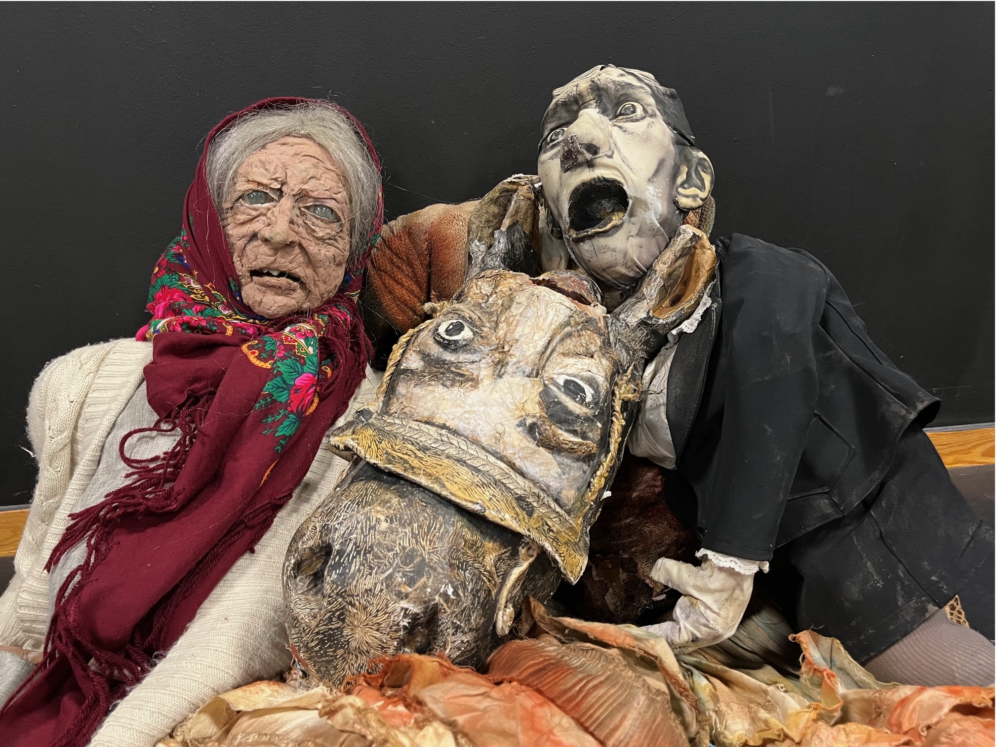 Restitution de fin du stage mené par Jean Michel D’Hoop : marionnettes portées mises en jeu dans l’univers du conte
