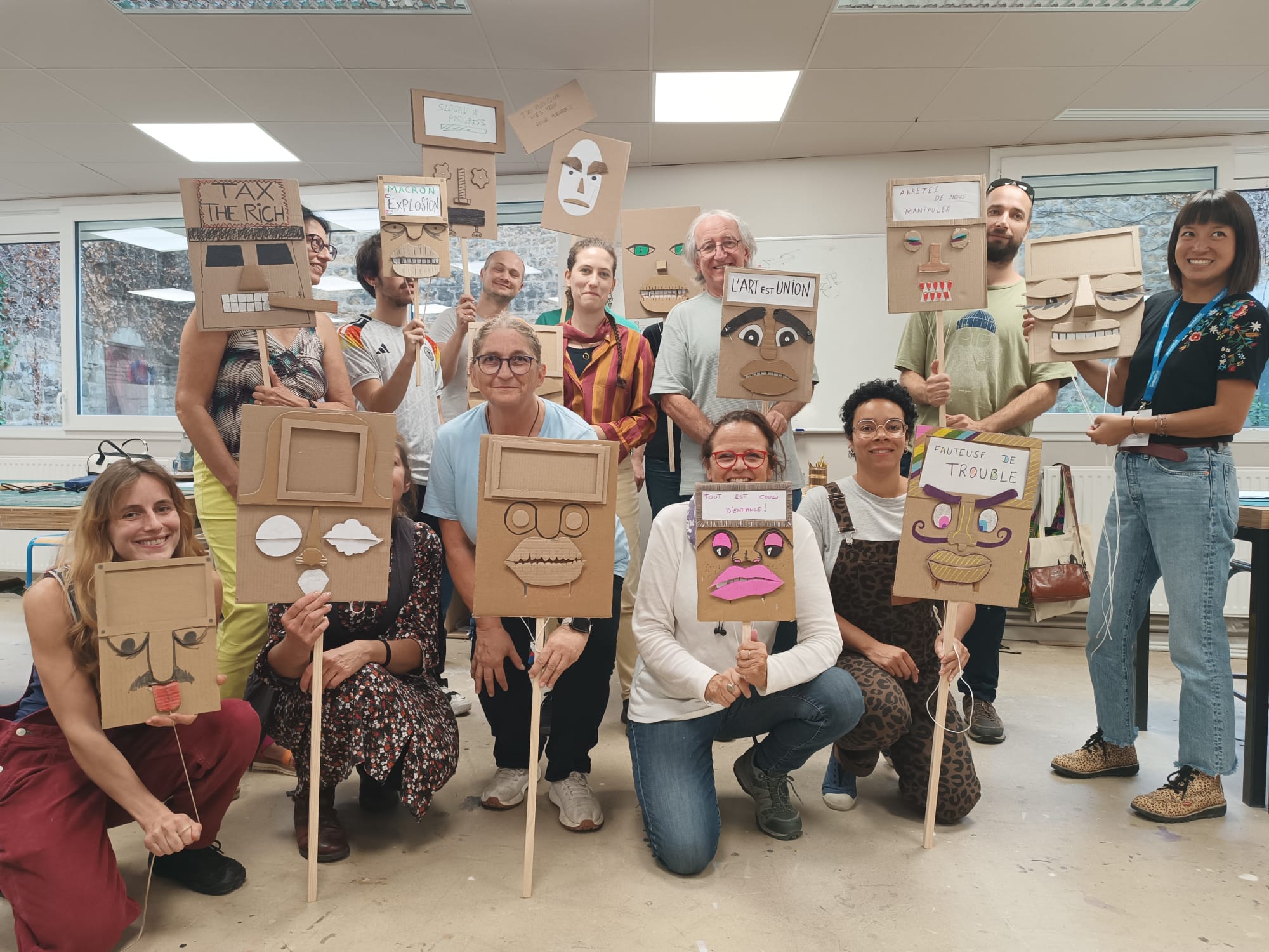 Cardboard puppet-making workshop with puppeteer Eve Bigontina.Come and make your own articulated cardboard head. We will see how to go from 2D to 3D and create a simple mouth mechanism that allows movement.